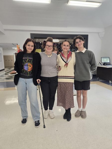 For Tuesday’s theme, each grade was assigned an age to dress as. Freshmen were spotted in the halls sporting tutus, pacifiers, and onesies as toddlers. Sophomores were given the theme of middle school, which they showed with oversized hoodies and Ugg boots. Juniors, however, turned to their parents’ closets in search of their outfits as middle aged adults, bringing in large Yeti cups and jeans. Seniors went all out as actual senior citizens, dressing in robes, grandfather sweaters, and carrying canes and walkers.
